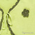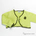 Коротенькое вязанное болеро прямого кроя с длинным рукавом. Завязка на шнурочек. Манжеты и края изделия окантованы более темной фигурной вязкой. Полочка украшена вязаным цветком.