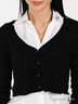 Детали: V-образный вырез горловины, длинные рукава с широкой манжетой, застежка на пуговицах.