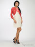 Болеро из трикотажной сетки, окантованное широкой трикотажной резинкой. Рукава реглан 3/4. В ворот вшита широкая атласная лента.
