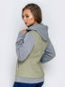Повседневный бомбер из приятного к телу трикотажа с цельнокроеным капюшоном. Полочка и спинка дополнены контрастной вставкой из плащёвки. По бокам предусмотрены карманы для удобства в носке.