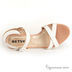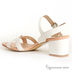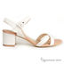 Элегантные белые босоножки выполнены из мягкой кожи. Модель имеет небольшой массивный каблук и удобный фиксирующий ремешок с серебристой застежкой.  Такие босоножки займут достойное место в любом гардеробе.
