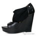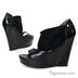 Женские босоножки из натуральной кожи на удобной танкетке, высота которой в пяточной части составляет 12 см, а в носочной 2,5 см. Верх обуви декорирован эластичной текстильной вставкой, а танкетка в пяточной части имитирована под дерево. Подкладка и вкладная стелька выполнены из натуральной кожи