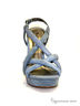 Изумительные босоножки на высоком каблуке.Выполнены в виде переплетения мягких ремешков, застегиваются на щиколотке. Верх босоножек выполнен из высококачественного велюра серо-голубого цвета. Подкладка из натуральной кожи. Отличный вариант для создания оригинального образа. Состав подкладки и стельки : натуральная кожа. Высота каблука ок.11 см, высота танкетки ок. 2 см.Подошва:тунит.Рекомендуем подбирать обувь больше на размер.Произведено в Бразилии.