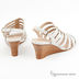 Стильные босоножки из натуральной кожи на танкетке с мелкой протекцией. Носок закруглен. Застегиваются на хлястик на пряжке.
