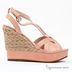 Стильные босоножки на танкетке с платформой и открытым мысом. Застежка на ремешок на щиколотке.