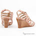 Стильные босоножки из натуральной кожи на танкетке с мелкой протекцией. Носок закруглен. Застегиваются на хлястик на пряжке.