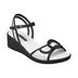 Модель на танкетке с декоративной черной окантовкой застегивается на ремешок.