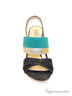 Яркие босоножки на высоком каблуке выполнены из нубука черного и бирюзового цвета и кожи под золото. Мягкая стелька из натуральной кожи обеспечит комфорт Вашим ножкам.Материал подкладки-натуральная кожа.Материал подошвы: п\у.Высота каблука ок. 10 см.Рекомендуем подбирать обувь больше на размер ( обувь маломерит). Произведено в Бразилии.