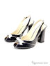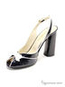 Элегантные босоножки выполнены из натуральной лакированной кожи темно-синего цвета и декорированы белыми вставками из лака. Мягкая подкладка и стелька из натуральной кожи обеспечивают ногам оптимальный воздухообмен и комфорт на весь день. Высота каблука ок.10 см.Подошва:тунит.Рекомендуем подбирать обувь размер в размер.Произведено в Турции.