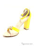 Стильные босоножки KLIMINI созданы для ярких натур. Модель выполнена изнатурального лака в комбинации двух цветов - желтого и светло-бежевого. Ремешок вокруг щиколотки способствует комфортной фиксации обуви на ноге. Удобный каблук обеспечат устойчивость. Декор модели представлен пряжкой на мысу.Мягкая подкладка и стелька из натуральной кожи обеспечивают ногам оптимальный воздухообмен и комфорт на весь день. Высота каблука ок.10 см.Подошва:тунит.Рекомендуем подбирать обувь размер в размер.Произведено в Турции