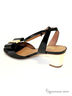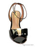 Стильные босоножки от KLIMINI выполнены из лакированной кожи в черном цвете. Модель декорирована восхитительным бантом в области мыса и золотистой пряжкой. Внутренняя часть полностью выполнена из мягкой кожи. Эффектный каблук под "золото" смотрится очень элегантно. Высота каблука ок. 4,8 см. Материал подошвы: тунит. Рекомендуем подбирать обувь больше на размер.