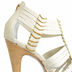 Эффектные женские босоножки Carvela, выполненные из мягкой белой кожи. Украшены яркими золотистыми нитями. Высокий бежевый каблук находится в приятном контрасте с белоснежным цветом основного материала. Сзади предусмотрена удобная застежка-молния.