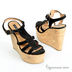 Оригинальные замшевые босоножки. Верх из замши глубокого черного цвета эффектно контрастирует с бежевой широкой платформой. Модель отлично сочетается с любым летним нарядом – универсальный вариант на теплое время года.