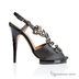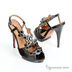 Шикарные женские босоножки. Высокая шпилька подчеркивает женственность и придает особую роскошь. Подошва проклеена. Ткань замысловато отделана черными и прозрачными кристаллами и стразами различного размера. Модель предусматривает удобную застежку-ремешок.