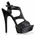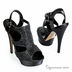 Роскошные вечерние босоножки черного цвета от Carvela, сделанные из богато украшенного текстиля. Высокий каблук уравновешивается толстой платформой, что выглядит очень эффектно и дарит ногам больший комфорт.