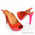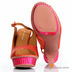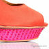 Эффектные текстильные босоножки с открытым носком от Kurt Geiger. Привлекает внимание неожиданный выбор цветов – коралловый в паре с ярко-розовым. Толстая платформа, украшенная россыпью кристаллов, уравновешивает высоту каблука, что дарит ногам больший комфорт.