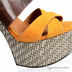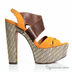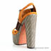 Экстравагантная модель босоножек от Kurt Geiger для смелых и неординарных женщин. Верх представляет собой эффектное переплетение кожаных ремней разной ширины. Сочетание «вкусного» шоколадного цвета с ярким оранжевым выглядит интересно и необычно. Толстая платформа и массивный устойчивый каблук контрастируют с верхом и привлекают взгляды.