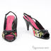 Женские босоножки на каблуке с открытым мысом и открытой пяткой. Снаружи текстиль, внутри натуральная кожа. Тонкая подошва, вклеенная стелька.