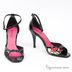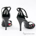 Женские босоножки на каблуке с открытым мысом и закрытой пяткой. С ремешком вокруг ноги. Снаружи текстиль, внутри натуральная кожа. Тонкая подошва / плоская, вклеенная стелька.