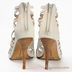 Летние босоножки из гладкой кожи. Каблук средней высоты, подошва без протекции, оригинальный дизайн, сзади застегиваются на молнию. Кожаная стелька простроченная красными нитками.