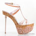 Нежные и элегантные босоножки на пробковой танкетке, украшенной кружевом в цвет кожи. Лакированные тонкие ремешки делают эту модель особенно стильной!