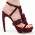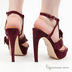 Босоножки из натурального велюра бордового цвета на высоком каблуке. Модель декорирована ремешками, завязанными в узлы. Подошва средней толщины, вклеенная стелька, сезон - лето.