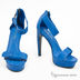 Босоножки выполнены из натуральной кожи синего цвета на высоком каблуке с удобной молнией сзади. Подошва средней толщины, вклеенная стелька, сезон - лето.
