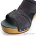 Черные открытые сабо UGG Australia, верх стилизован под переплетение широких кожаных ремней. Удобная деревянная подошва с резиновой вставкой позволит вам чувствовать себя комфортно в любой ситуации.