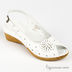 Удобные босоножки выполнены из кожи белого цвета. Верх модели украшен фигурной перфорацией, а мысок декорирован цветочной аппликацией в тон изделию. Небольшая танкетка, анатомическая подошва и мягкий регулируемый ремешок на пятке обеспечат Вам комфорт при носке, поэтому босоножки прекрасно подойдут для длительной прогулки.
