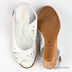 Удобные босоножки выполнены из кожи белого цвета. Верх модели украшен фигурной перфорацией. Небольшая пробковая танкетка, анатомическая подошва и мягкий регулируемый ремешок на пятке обеспечат Вам комфорт при носке, поэтому босоножки прекрасно подойдут для длительной прогулки.