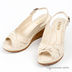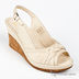 Босоножки женские на танкетке. Верх изделия выполнен из натуральной кожи светло-бежевого цвета. Удобная застежка на пятке. Анатомическая стелька. Танкетка "под пробку" частично отделана кожей.