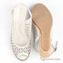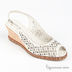 Босоножки на танкетке. Изготовлены из натуральной кожи бежевого цвета. Открытый мысок. Верх декорирован фигурной перфорацией. Анатомическая стелька. Удобная застежка на пятке.