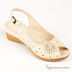 Удобные босоножки выполнены из кожи бежевого цвета. Верх модели украшен фигурной перфорацией, а мысок декорирован цветочной аппликацией в тон изделию. Небольшая танкетка, анатомическая подошва и мягкий регулируемый ремешок на пятке обеспечат Вам комфорт при носке, поэтому босоножки прекрасно подойдут для длительной прогулки.