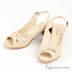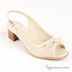 Босоножки женские из натуральной кожи светло-бежевого цвета. Открытый мысок. Верх модели украшен перфорацией, мыс декорирован бантиком из кожи в тон изделию. Удобный широкий каблук.