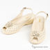 Удобные босоножки выполнены из кожи бежевого цвета. Верх модели украшен фигурной перфорацией, а мысок декорирован цветочной аппликацией в тон изделию. Небольшая танкетка, анатомическая подошва и мягкий регулируемый ремешок на пятке обеспечат Вам комфорт при носке, поэтому босоножки прекрасно подойдут для длительной прогулки.