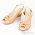 Удобные босоножки выполнены из кожи светло-коричневого цвета. Верх модели украшен фигурной перфорацией, а мысок оформлен декоративным узлом со сборками в тон изделию. Небольшая танкетка, анатомическая подошва и мягкий регулируемый ремешок на пятке обеспечат Вам комфорт при носке, поэтому босоножки прекрасно подойдут для длительной прогулки.