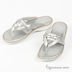 Босоножки женские из натуральной кожи серебристого цвета. Верх изделия декорирован кожаным ремешком в тон изделию. Мягкая кожаная стелька. Литая подошва серебристо-белого цвета.