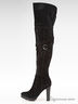 Ботфорты из искусственной замши, с молнией до колена. Верх голенища сзади на широкой резинке. Декорированы ремешком с пряжкой. Каблук широкий, высота 10см, высота голенища 50см.