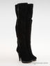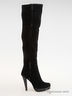 Ботфорты из экокожи (искусственной замши), с молнией до середины голенища. Декорированы вставками из лаковой искусственной кожи. Каблук высотой 12 см, высота голенища 50 см.