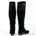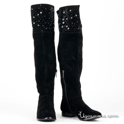 Стильные женские ботфорты из натуральной замши на тонкой жесткой подошве с мелкой протекцией. Застегиваются на молнию до середины голенища. Внутренняя нижняя часть изделия дополнена натуральным мехом, голенище дополнено тонкой ворсистой подкладкой (еврозима). Декорированы стразами и пайетками.
