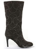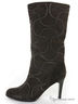 Демисезонные ботильоны из натуральной замши. Высота сапога от пятки до верха(без учета каблука) 20 см.Ширина верха от 24 до 36см.Высота каблука 8см. Подходит на худую, среднюю и полную ногу. Модель сшита трубой, что дает возможность носить ботильоны как с юбкой, так и с леггинсами и узкими брюками. Нет молнии.