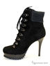 Превосходные ботильоны на высоком тонком каблуке и рифленой удобной платформе.Спереди фиксируются шнуровкой.Вверху предусмотрена текстильная плотная резинка для нежного прилегания к ноге.Стильный вариант для уверенных в себе женщин. Подкладка – обувной текстиль,стелька-кожа.Материал верха:велюр черного цвета. Высота каблука – ок.11 см.,высота плато:ок2,5см.Высота голенища:ок11,5см.Рекомендуем подбирать обувь больше на размер.Сделано в Бразилии.