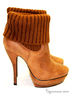 Стильные и неповторимые по дизайну ботильоны от KLIMINI выполнены из дубленой кожи рыжего цвета с эффектом потертости. Модель оформлена трикотажным отворотом. Изделие подчеркнет Ваш безупречный вкус и неповторимость.Внутренняя отделка выполнена из обувного текстиля, стелька - из кожи. Подошва дополнена противоскользящей накладкой. Высота каблука ок. 13 см. Высота платформы ок.2,5 см.Рекомендуем подбирать обувь больше на размер(обувь маломерит).Сделано в Бразилии.