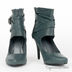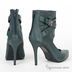 Очаровательные женские полуоткрытые ботильоны из искусственной кожи. Высокий каблук. Щиколотка декорирована перфорацией и ремешком с металлической пряжкой. Острый мысок. Застегиваются сзади на молнию.