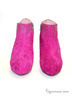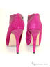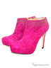 Ботильоны лаконичного исполнения - прекрасный выбор стильной женщины. Модель на высоком устойчивом каблуке и скрытой платформе, с заостренным мыском, выполнена из велюра\замши и украшено мелкими металлизированными стразами. Сбоку имеется застежка на молнию. Расцветка фукси крайне привлекательна . Подкладка и стелька : натуральная кожа. подошва: тунит. Высота каблука ок.12см., высота плато ок.2,5см. Рекомендуем подбирать обувь на размер больше (обувь маломерит). Эта обувь произведена в Бразилии.