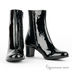 Стильные лаковые ботильоны на устойчивом каблуке. Застежка на молнию. Кожаная подкладка. Прорезиненная подошва с протектором.
