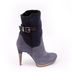Нижняя часть модели выполнена из матовой кожи актуального серого цвета. Голенище сапожек изготовлено из натуральной черной овчины, которая плотно и мягко облегает щиколотку. Небольшой ремешок в верхней части придает форму подвижному голенищу и позволяет регулировать его полноту.