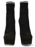 Женские ботильоны KLIMINI подчеркнут красоту ваших ног.Модель выполнена из натурального велюра (замши) черного цвета. Верх модели украшен металлическими заклепками. Боковая молния отлично фиксирует модель на ноге.Высокий каблук компенсирован за счет скошенной платформы. Внутри - подкладка и стелька из натурального меха.Сзади дополнены регулируемой резинкой. Высота каблука ок.14см.,высота плато ок.3,5см.Высота голенища ок.14 см.Объем голенища ок.26см.Подошва тунит.Рекомендуем подбирать обувь размер в размер.Произведено в Турции.