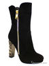 Чудесные женские ботильоны позволят KLIMINI вам выглядеть восхитительно. Модель выполнена из велюра черного цвета.Верх модели декорирован крупной молнией.Устойчивый каблук украшен интересным рисунком под черненный "металл".Боковая внутренняя молния позволяет модели отлично сидеть на ноге. Внутри - подкладка и стелька из натурального меха. Высота каблука ок.11,высота плато ок1см.Высота голенища ок.15см.Объем голенища ок.28см.Подошва тунит.Рекомендуем подбирать обувь размер в размер.Произведено в Турции.