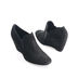 Ботильоны из черной замши выглядят очень элегантно и благородно. Такому эффекту они обязаны плавным линиям кроя, модному суженному круглому чуть загнутому вверх носку и обтянутой замшей 8-сантиметровой танкетке. Эластичные вставки по бокам обеспечивают наилучшую посадку и избавляют от мороки с молниями. Отличный демисезонный вариант.